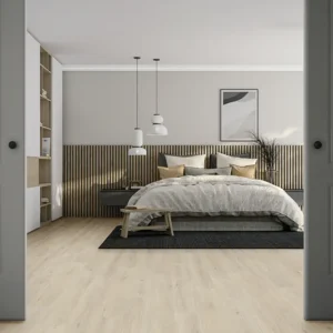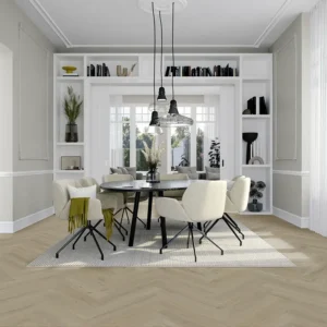 De Hongaarse punt 7230 van Vivafloors is een lichte eiken PVC-vloer met een verfijnd puntpatroon onder een hoek van 60 graden. Dankzij dit klassieke legpatroon ontstaat een rustige, ruimtelijke uitstraling die perfect past in zowel moderne als karakteristieke interieurs. De vloer is onderhoudsvriendelijk, slijtvast, geschikt voor vloerverwarming en voorzien van een matte afwerking met natuurgetrouwe Wood Touch embossing. Een duurzame keuze met 25 jaar garantie.